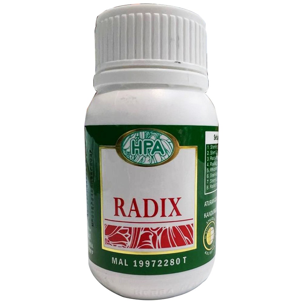 Radix Kapsul merupakan ramuan herba yang dibuat dari sinergi beberapa jenis herba dengan bahan utama Akar Eurycoma longifolia (Tongkat Ali). Radix Kapsul merupakan herba deuretik, yang juga anti piretik dan anti hypertensi. Radix Kapsul merupakan jenis herba panas sehingga penggunaan awal harus dengan dosis rendah.